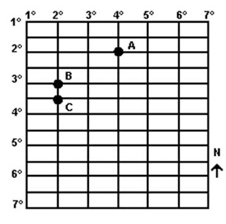 6 Questão:Responder à questão com base no gráfico, que representa parte das coordenadas geográficas